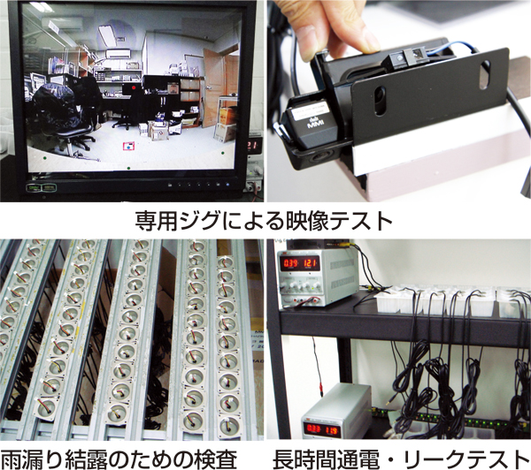 製品の組み立てが完了した時点で映像表示範囲の点検を行います。映像表示範囲が基準より外れる製品はNGとなり市場に出回る事はありません。更に製品は長時間通電・リークテストならびに雨漏れや結露対策も万全に行っております。 |